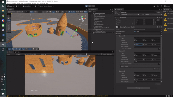 Starting off as a tech demo, it has grown into an ongoing part time project with my friends. Currently, I'm leading the development of the core feature: procedurally generated buildings, interactable in realtime.